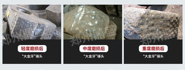 大金牙錘頭本體如同鑲牙一般鑲鑄極其堅硬的鎢鈦合金齒塊尤其適合高硅、堅硬、強磨蝕性石灰石。