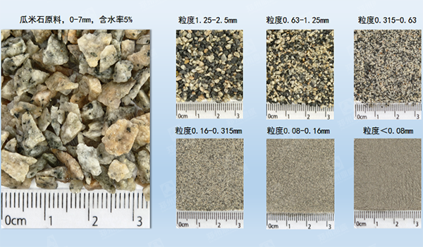 為幫助客戶解決米石使用面窄,處置價格低,銷售困難的問題,鼎盛公司抓住客戶困境重視客戶體驗,并根據米石顆粒粒度小,再處置破碎困難,處置成本高,細篩分困難等的特性,且在干法作業(yè)與濕法作業(yè)的選擇中,選擇干法脫粉保證生產工況,通過一系列設備改良,工藝優(yōu)化組合,推出瓜米石專用干法制砂系統(tǒng),逐步解決上述問題,將低價格的廢棄瓜米石,一舉成功轉化成高性價比的人工機制砂。