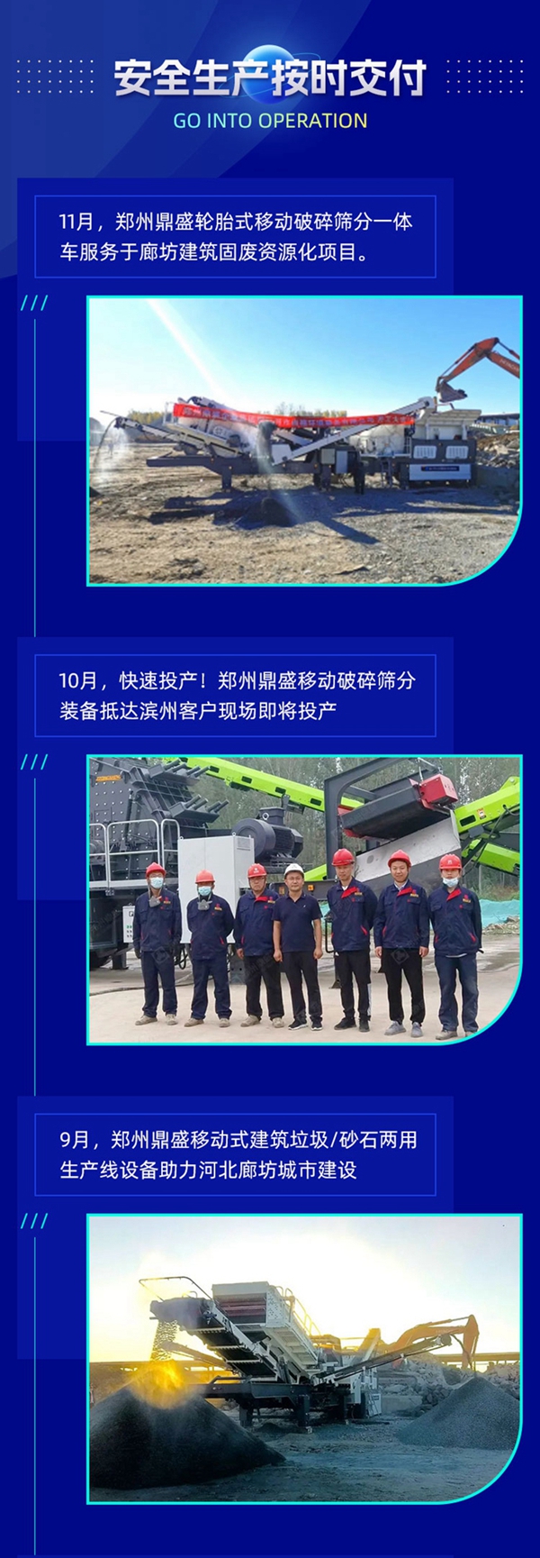 從鄭州鼎盛高新產(chǎn)業(yè)園發(fā)出的高性能輪胎式移動破碎篩分一體車順利抵達(dá)廊坊客戶現(xiàn)場,與裝備一同抵達(dá)現(xiàn)場的還有鼎盛售后工程師。